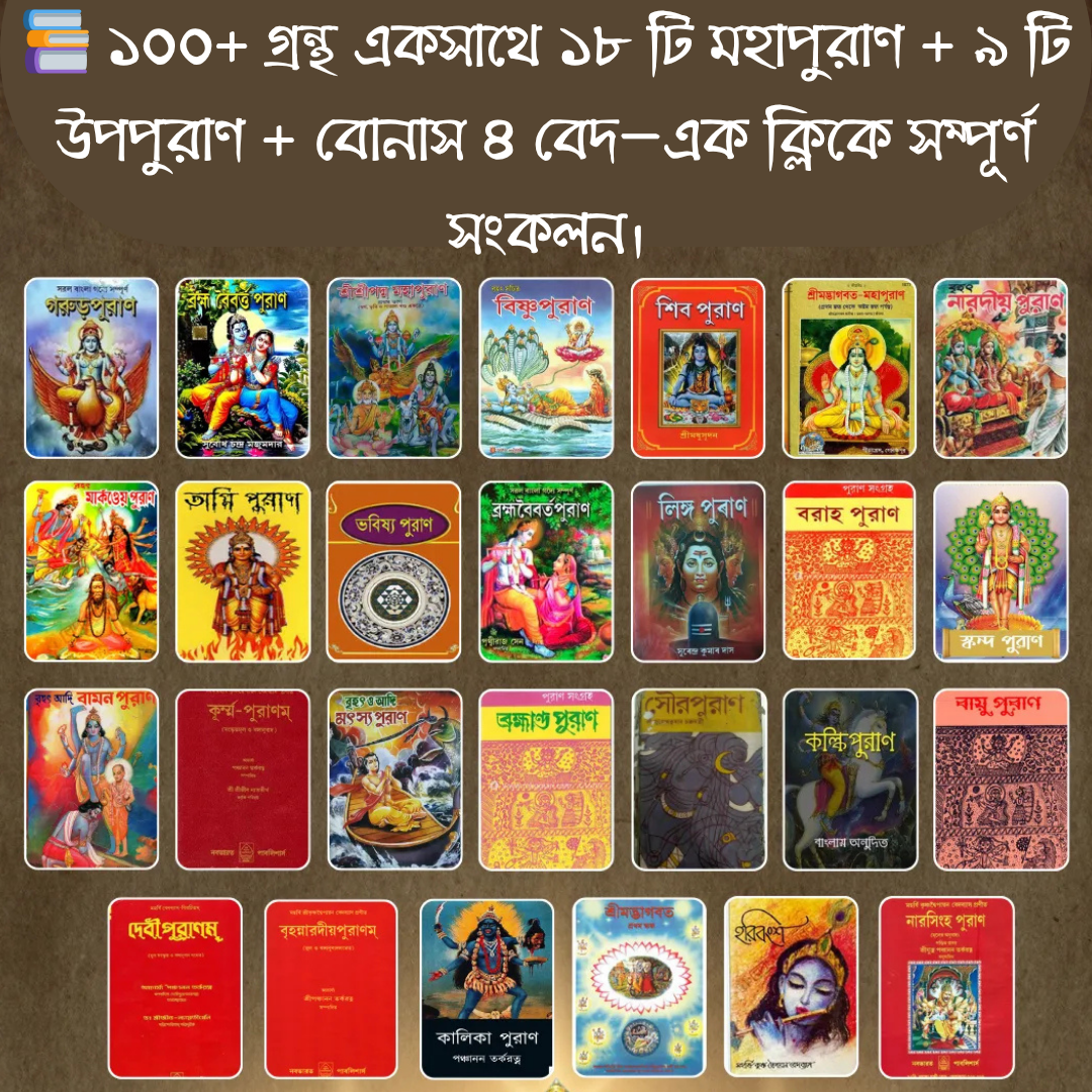 এই সংগ্রহে হিন্দু পুরাণ ও ধর্মীয় বিষয়ভিত্তিক ১০০+ বাংলা ইবুক রয়েছে। এর মধ্যে রয়েছে: